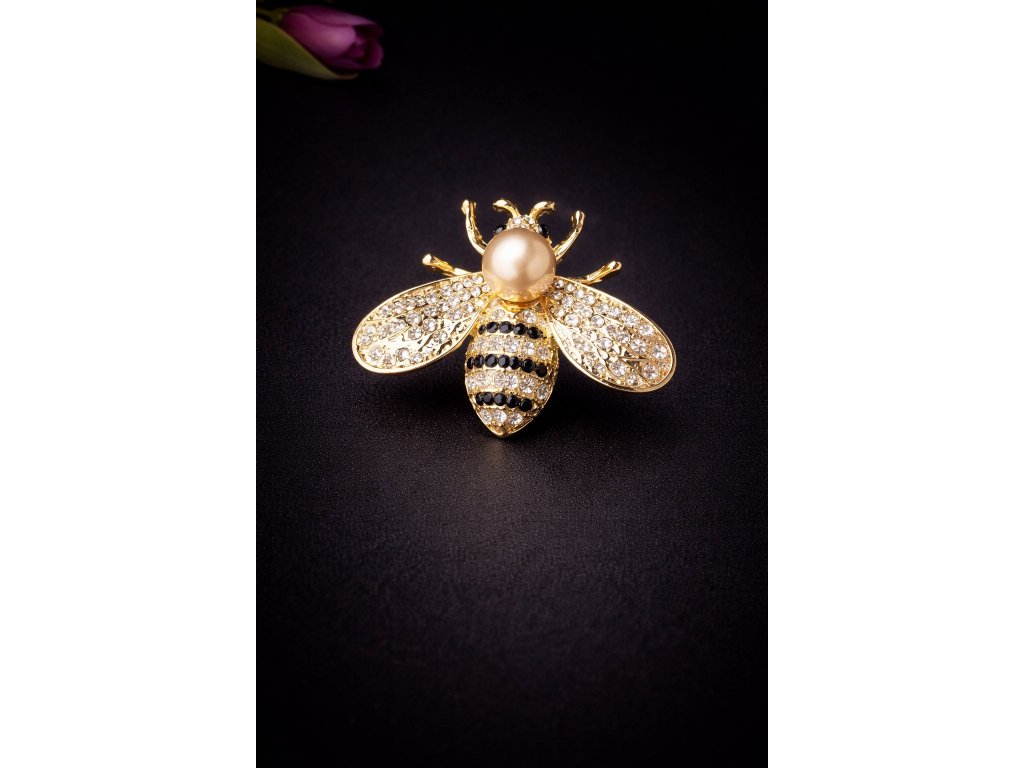 Tahle brož ve tvaru včely je zdobená zářivými kamínky, co chytají světlo z každého úhlu. Zlatavé tělo s perlou uprostřed dodává šmrnc a jemnou eleganci. Perfektní doplněk na kabát, šaty, svetr i kabelku – všude, kde chceš zazářit a ukázat svůj hravý styl.