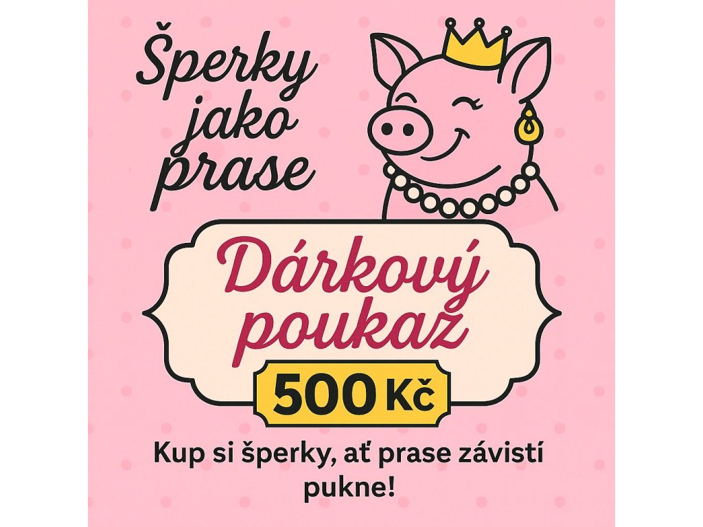 S dárkovým poukazem Šperky jako prase může obdarovaný vybírat z originálních ocelových náušnic, náramků a řetízků, které vydrží i ty největší prasečí zážitky 🐷💖.