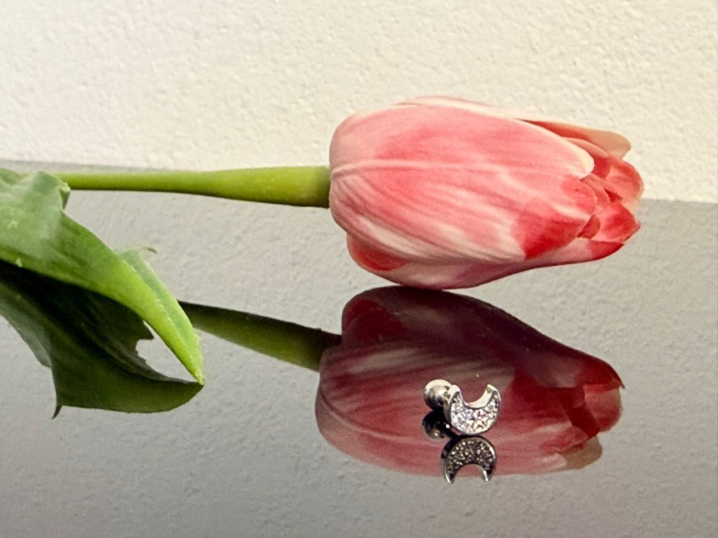 Magická a třpytivá jako noční obloha 🌙✨ Tahle single náušnice s půlměsícem osázeným zirkony je jemný, ale výrazný detail, který krásně doplní tvoje ucho. Hodí se do helixu, tragusu, conchu i lalůčku – prostě kamkoliv, kde chceš mít malý kousek vesmíru.