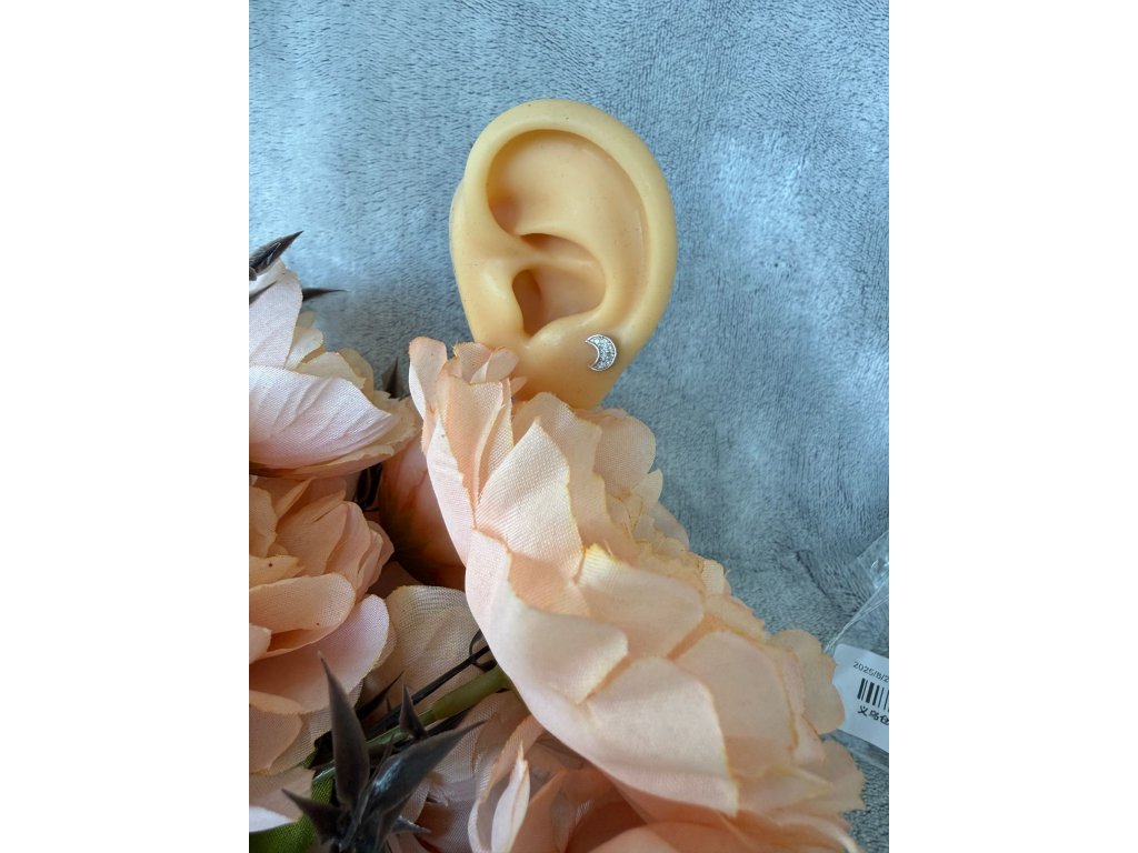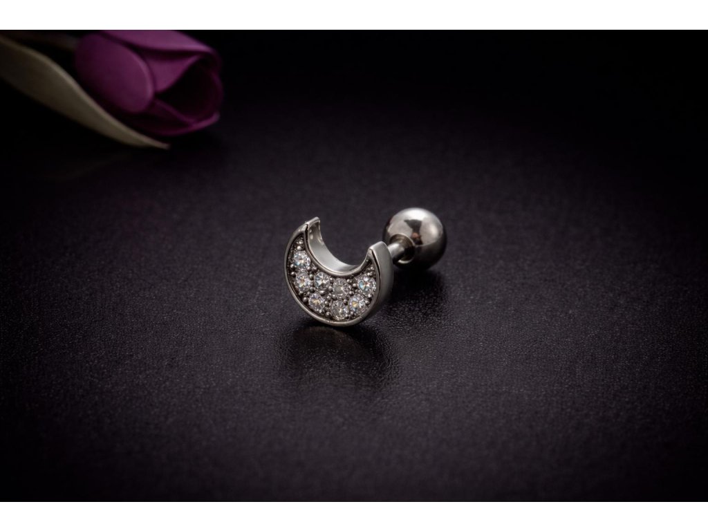 🐷 Singl náušnice Měsíc se zirkony – chirurgická ocel 316L