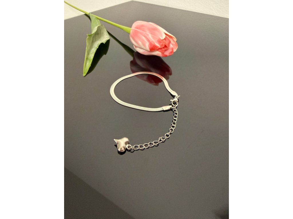 ✨ Design: plochý náramek zakončený srdíčkem
