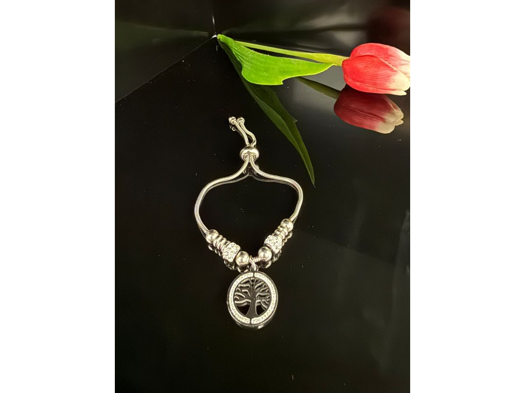 Tenhle elegantní náramek z chirurgické oceli 316 má přívěsek stromu života, ozdobený drobnými detaily. Díky nastavitelnému zapínání padne na každou ruku až do délky 20 cm.