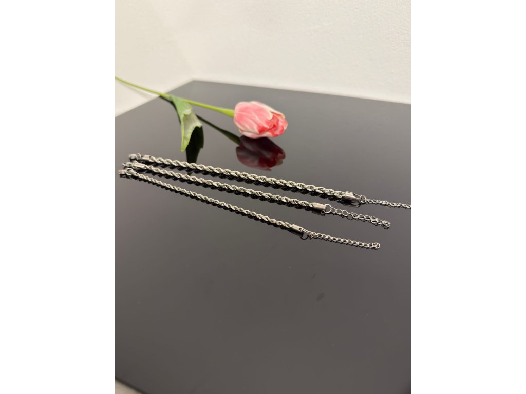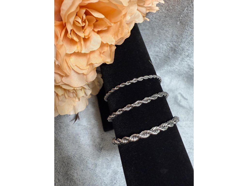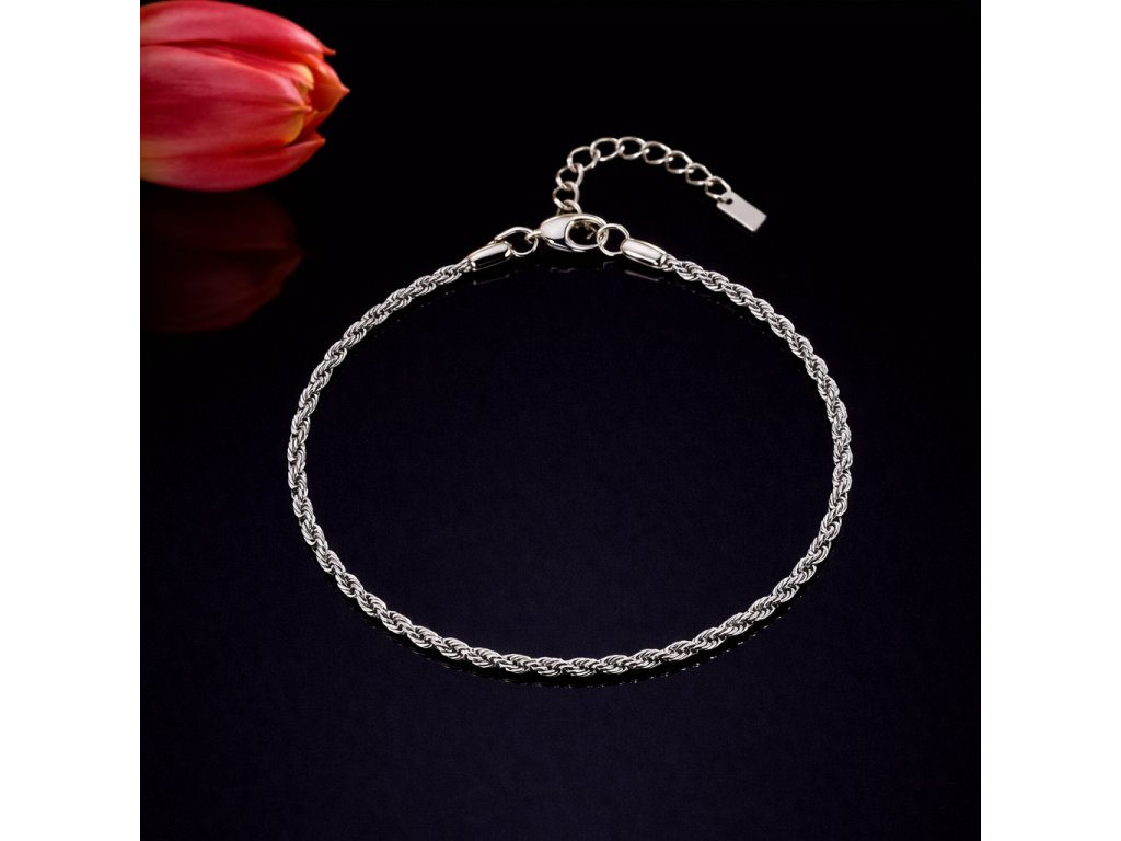 Jemný a minimalistický ✨ Provazový náramek o tloušťce 3 mm je ideální pro ty, kdo milují decentní šperky. Díky délce 17 + 5 cm se snadno přizpůsobí tvému zápěstí a díky chirurgické oceli 316L je odolný, hypoalergenní a stále krásně lesklý.