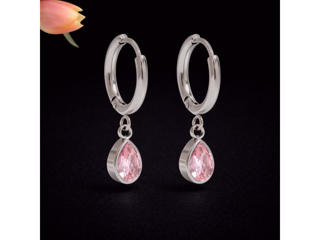 Vyrobené z chirurgické oceli 316L, která se nezalekne ani každodenního nošení, potu nebo deště, a doplněné růžovými kamínky ve tvaru kapky, co se třpytí jako první sklenička prosecca po práci. 🍾