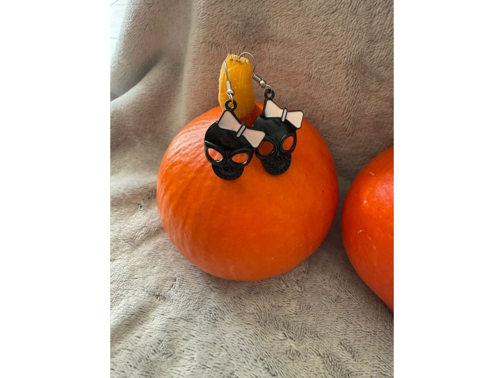 Tyhle náušnice kombinují temnou černou lebku s růžovou mašlí, takže máš creepy & cute look v jednom 💀💕. Ideál na Halloween, koncert nebo jen tak – když chceš ukázat, že máš sladkou, ale pekelnou stránku zároveň 😏🔥.