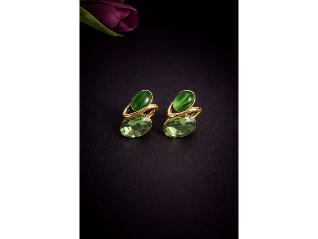 Náušnice z chirurgické oceli 316L s pozlaceným povrchem a zářivě zeleným kamenem ti rozzáří obličej i den – i když je pondělí a všechno jde do kopru. 😄