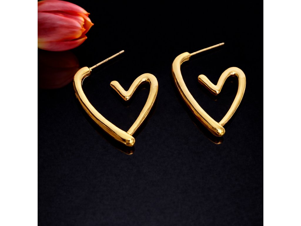 🐷 Náušnice Srdce – pozlacená chirurgická ocel 304