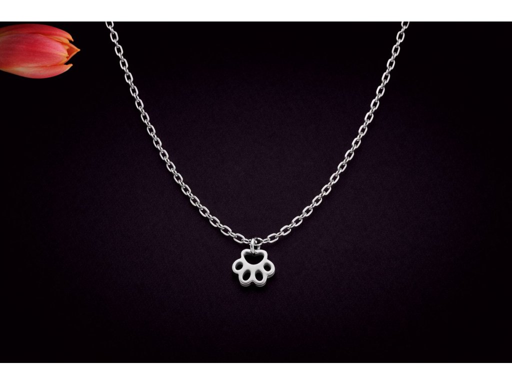 Tenhle řetízek z kvalitní oceli 304 (45+ cm) zdobí přívěsek psí tlapky. Jemnej design, co dá jasně najevo, že pes je tvůj parťák na život a styl.