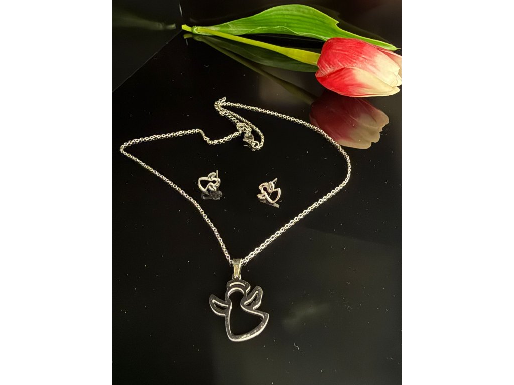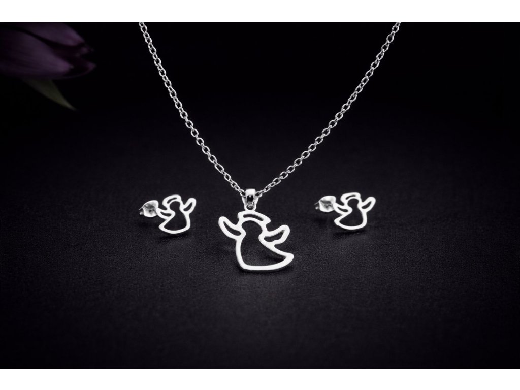 Jemný přívěsek anděla na řetízku + sladěné náušnice