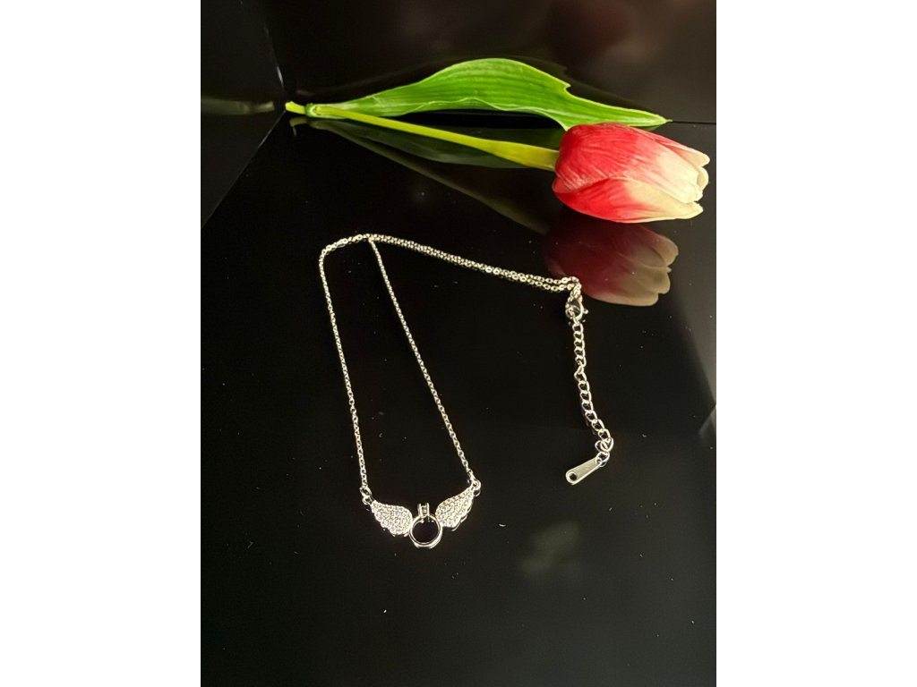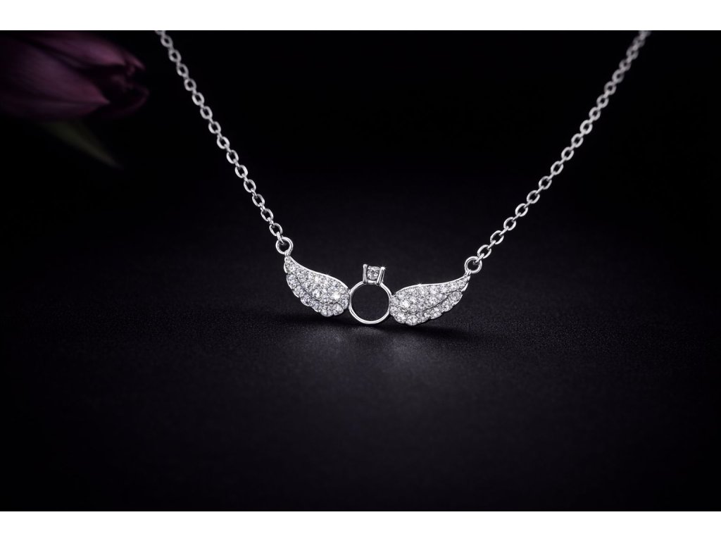 Křídla symbolizují ochranu, naději a vnitřní sílu, prstýnek pak spojení a nekonečnost. Díky jednoduchému, nadčasovému designu se náhrdelník hodí ke každodennímu nošení i jako decentní doplněk ke slavnostnímu outfitu.
