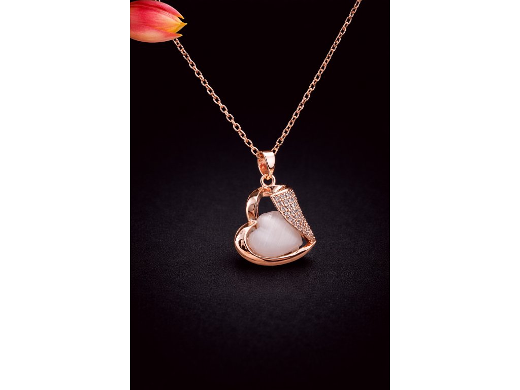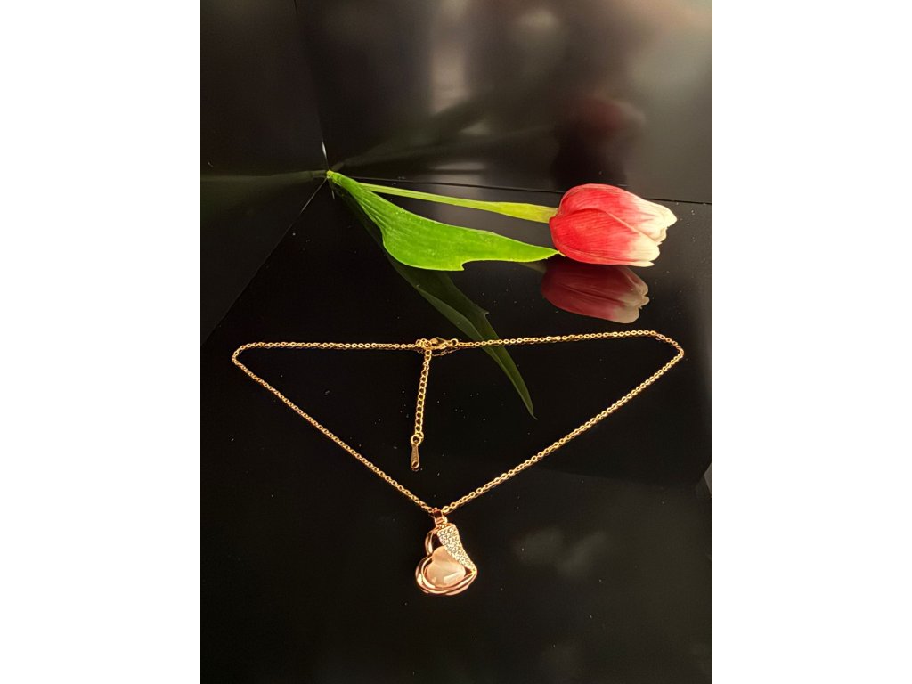 Tenhle elegantní řetízek z chirurgické oceli 316 (40 + 5 cm) zdobí přívěsek ve tvaru srdce s drobným kamínkem. Povrch v barvě růžového zlata působí něžně, romanticky a přitom luxusně.