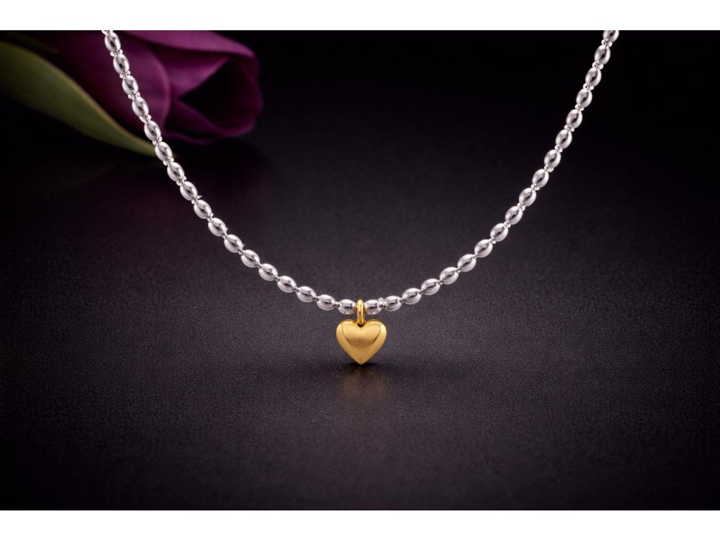 Kombinace stříbrné barvy řetízku a zlatého srdíčka působí moderně a zároveň velmi jemně. Díky kvalitní chirurgické oceli je řetízek odolný, barevně stálý a vhodný i pro citlivou pokožku.