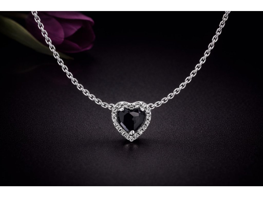 srdíčkovým přívěskem s černým kamenem, který je lemovaný drobnými třpytivými kamínky ✨