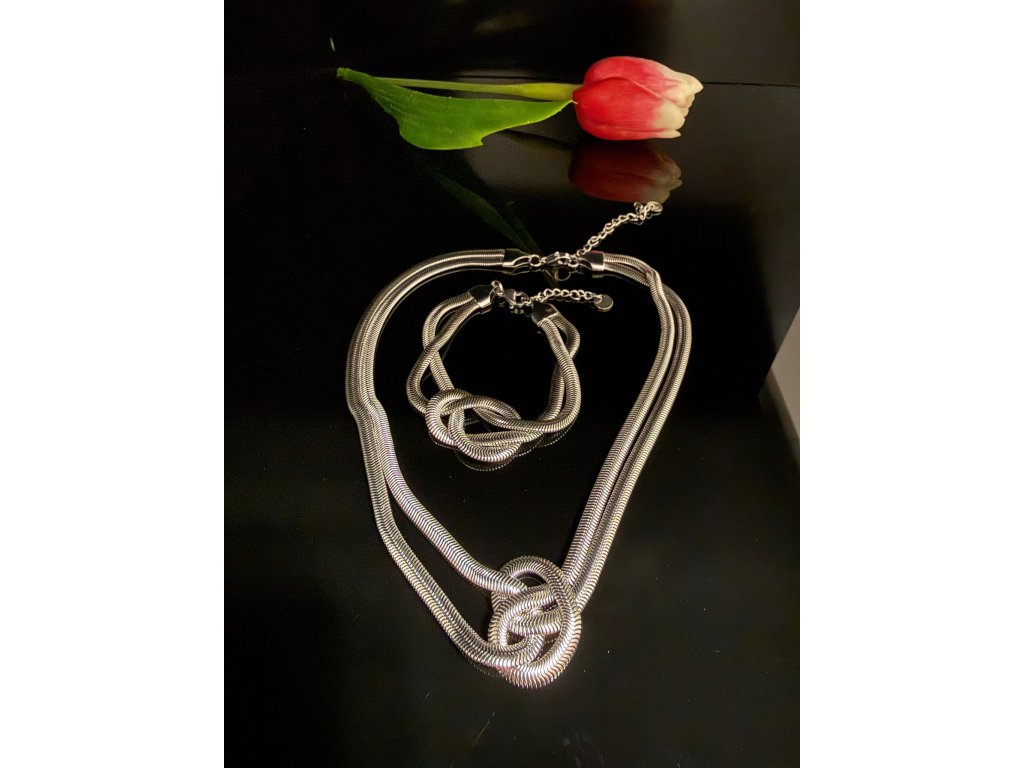 Elegantní set náhrdelníku (34+7 cm) a náramku (14+5 cm) z kvalitní oceli s výrazným uzlem 🐷💍. Symbol propojení, síly a nekonečna, který se skvěle hodí pro každodenní nošení i speciální příležitosti.