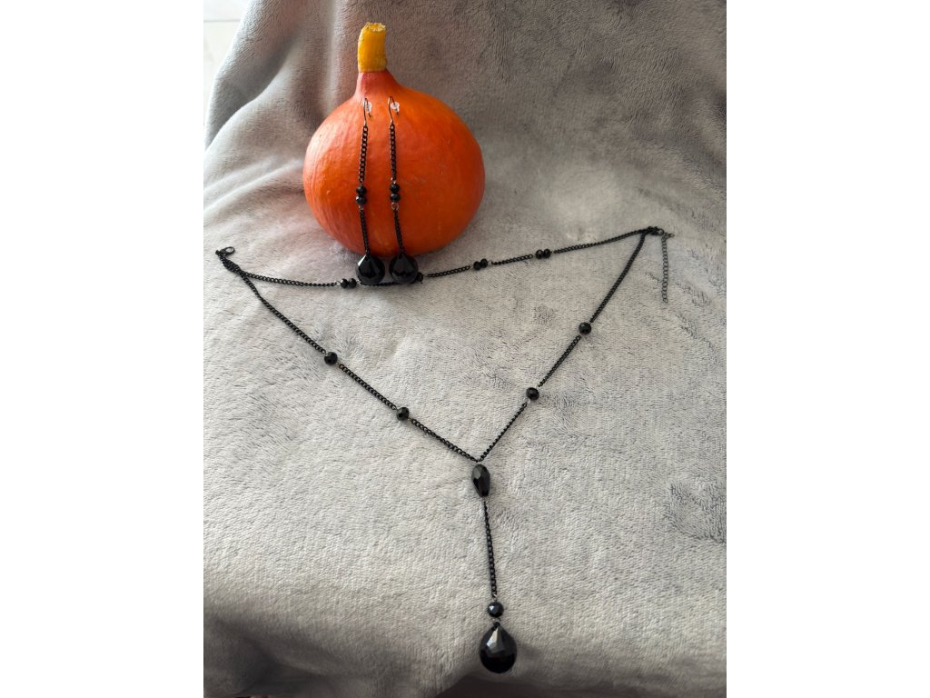 Tenhle gotický set obsahuje černý náhrdelník (36,5 + 5 cm) a ladící visací náušnice. Dokonalý doplněk na Halloween, gothic party i na dny, kdy prostě chceš ukázat, že černá je víc než jen barva – je to životní styl 🖤⚡.
