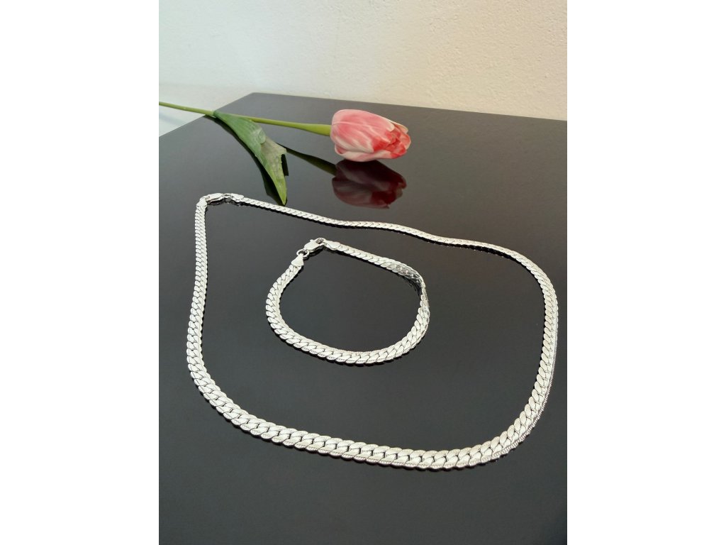 Tenhle postříbřený set ze stříbra 925 obsahuje řetízek (50 cm) a náramek (20 cm). Oba kousky mají čistý, elegantní design, kterej nikdy nevyjde z módy. Stříbro 925 ti zajistí kvalitu, co vydrží, a lesk, kterej přitáhne oči okolí.