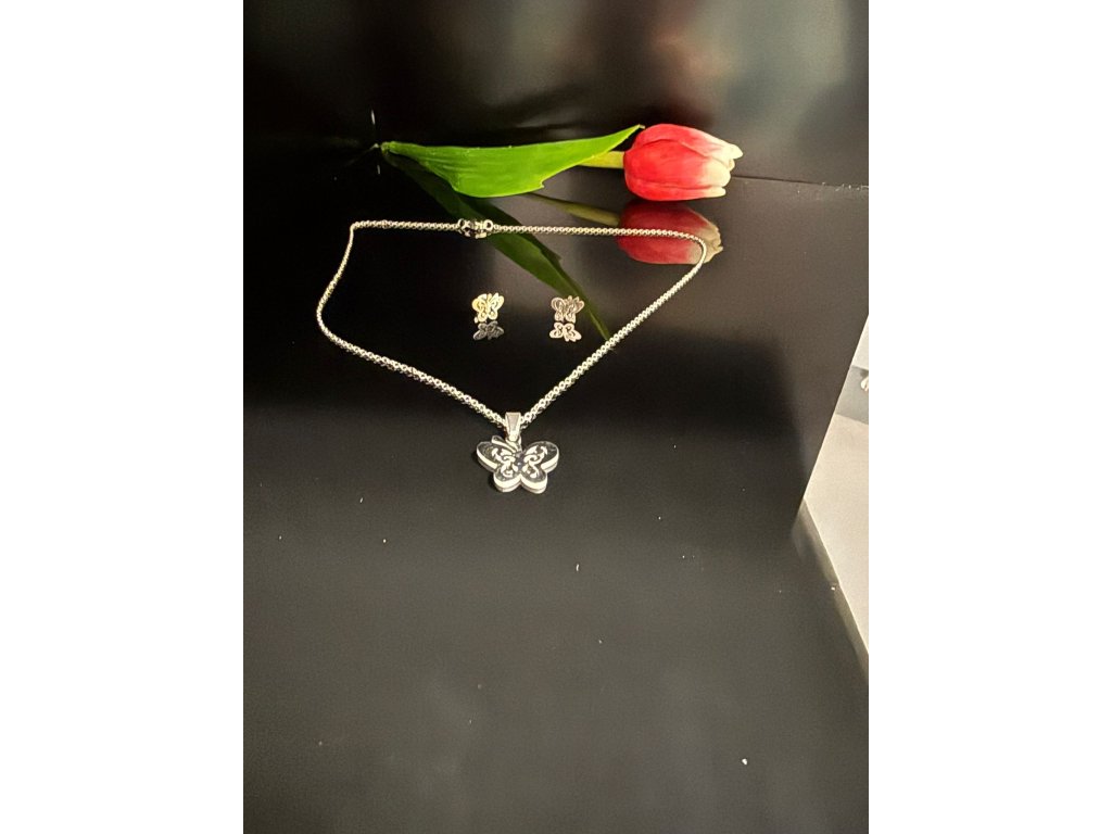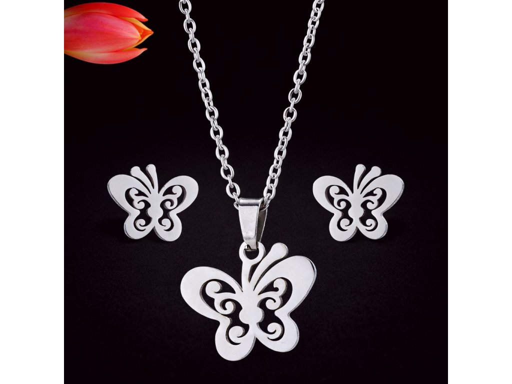 Tenhle set z kvalitní oceli 304 obsahuje jemný řetízek (45 cm) a sladěné náušnice ve tvaru motýlků. Jednoduchý, ale elegantní design působí romanticky a nadčasově – skvěle se hodí k běžnému nošení i ke speciálním příležitostem.