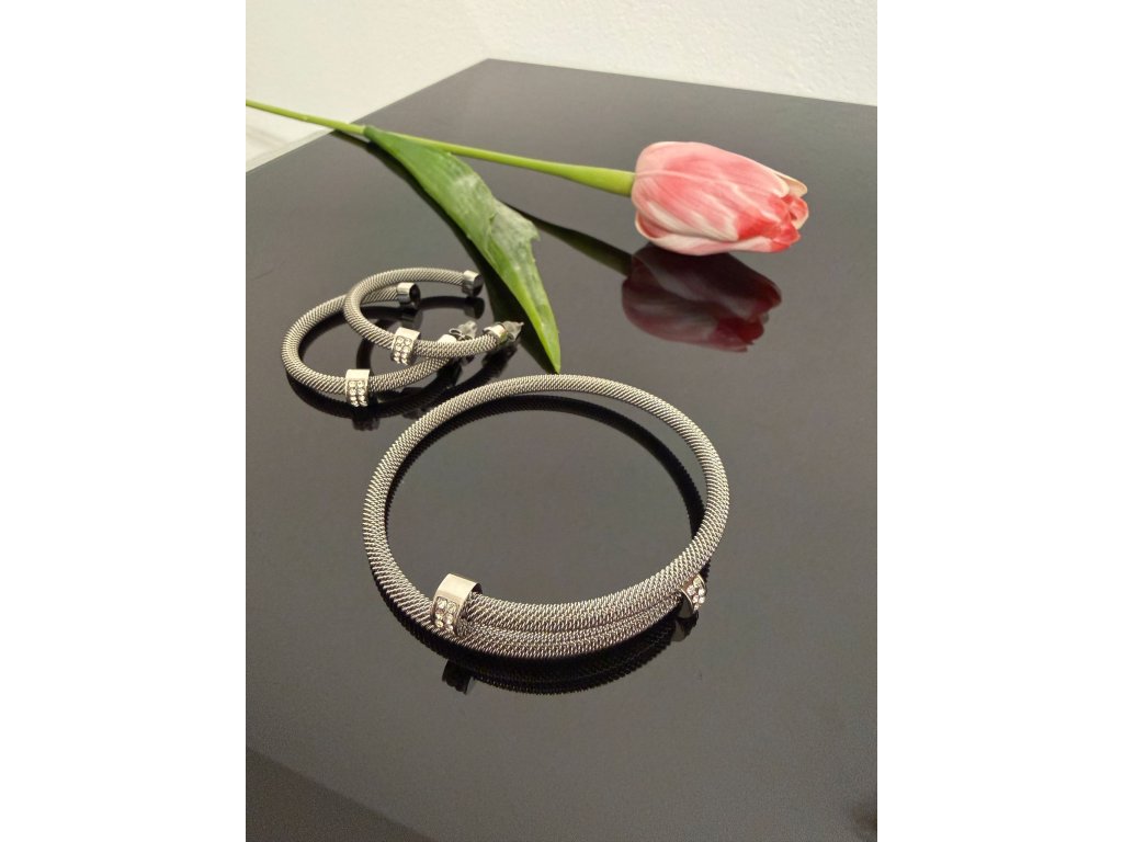 Jemnost a třpyt v dokonale sladěné dvojici ✨ Tenhle set šperků z chirurgické oceli 304 spojuje elegantní provazový náramek zakončený zirkony a náušnice s centrálním zirkonem. Stříbrné provedení působí čistě, univerzálně a hodí se úplně ke všemu – od každodenního nošení po slavnostní příležitosti.